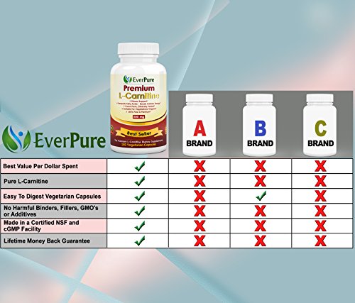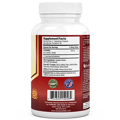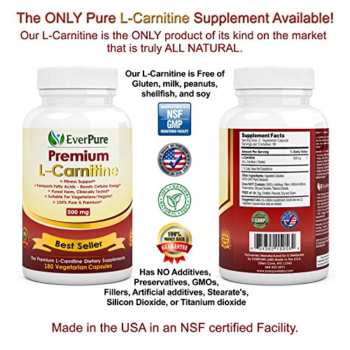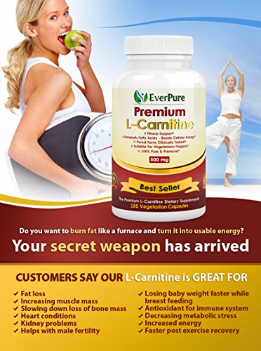 -. Title : EverPure L-Carnitine Tartrate - Top Rated - 500mg 180 Vegetarian Capsules - No Harmful Additives - Burn Fat - Improves Fitness - Immune System - Antioxidant Protection - Promotes Blood Flow
