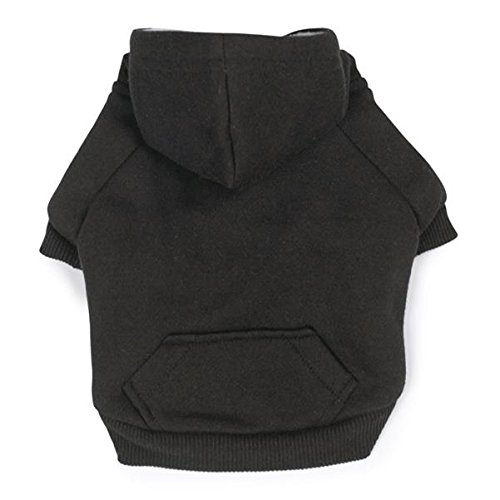 -. Feature : Fleece lined dog hoodie is the perfect basic for any dog wardrobe / Ribbed sleeves and waistband with Velcro placket for cozy fit / Made of machine-washable 100 percent polyester design / Available in black color and x-small size / Measures 10-inch length