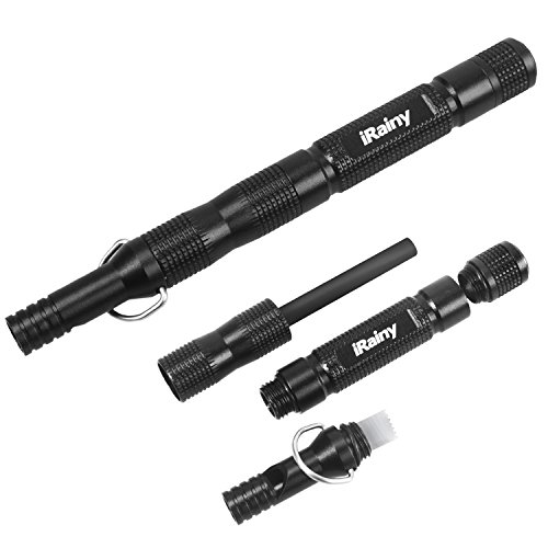 ALL IN ONE EMERGENCY TOOLS: Magnesium fire starter stick, large scraper, compass, whistle and keychain;