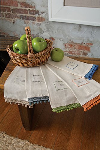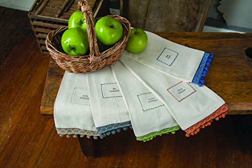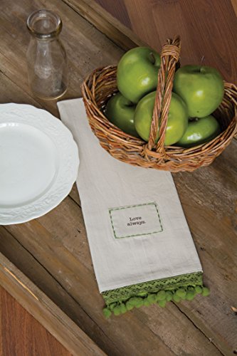 Heritage Lace Vintage Pom Pom Love Always Tea Towel, 18 by 28-Inch, White/Sage