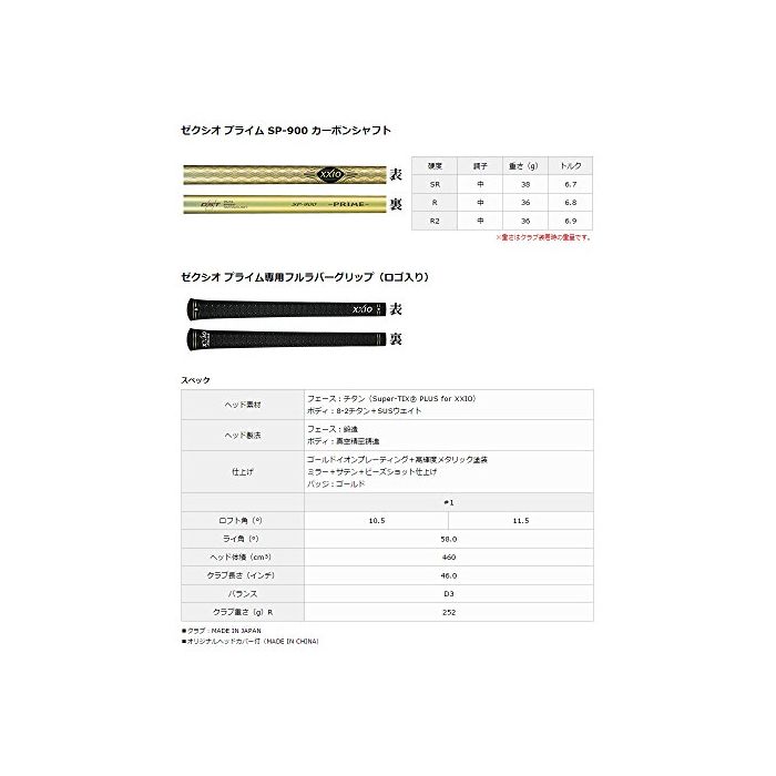 원본상품명: DUNLOP(ダンロップ) ドライバ? XXIO PRIME ドライバ? ゼクシオプライム SP-900 カ?ボンシャフト R2 ロフト角:11.5度 番手:1W
