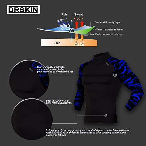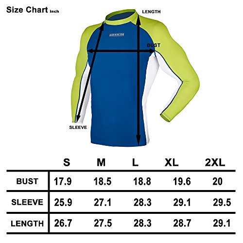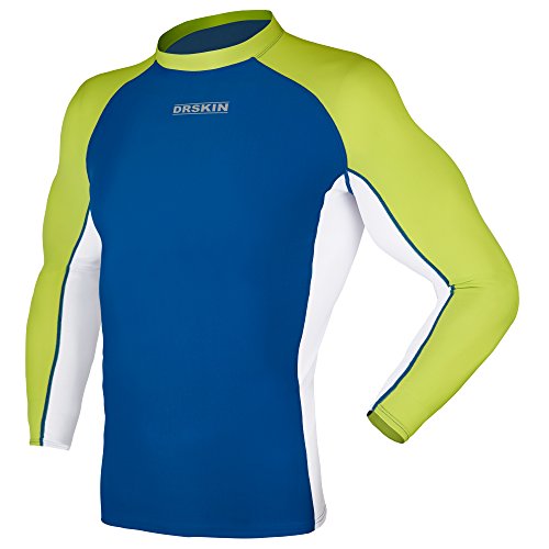 DRSKIN UV Sun Protection Long Sleeve Top Shirts Skins Tee Rash Guard Compression Base Layer UPF 50+ (RASH MA B-G-BU03, XL)