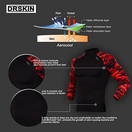 DRSKIN UV Sun Protection Long Sleeve Top Shirts Skins Tee Rash Guard Compression Base Layer UPF 50+ (RSB-MRE92, XL)