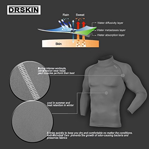 DRSKIN UV Sun Protection Long Sleeve Top Shirts Skins Tee Rash Guard Compression Base Layer UPF 50+ (SMGY32, XL)