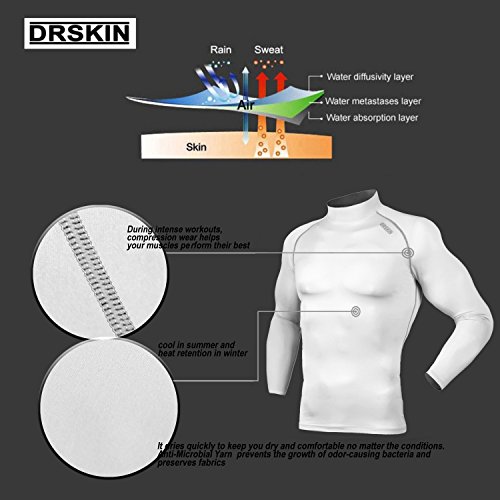 DRSKIN UV Sun Protection Long Sleeve Top Shirts Skins Tee Rash Guard Compression Base Layer UPF 50+ (SMBB34, XL)