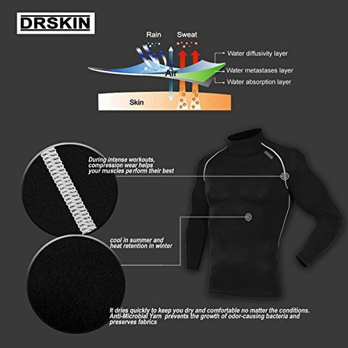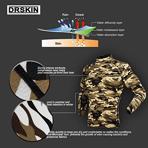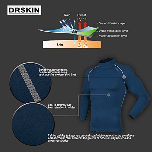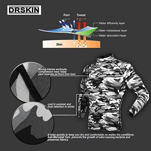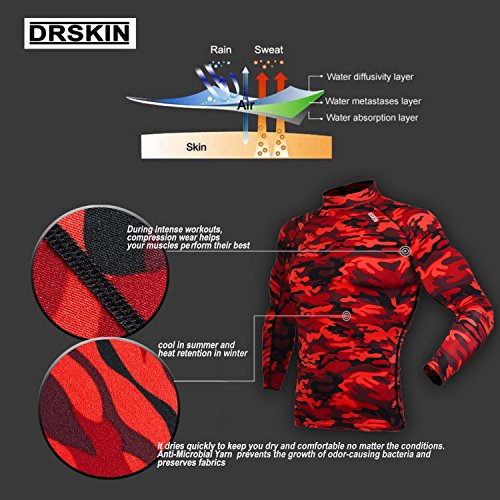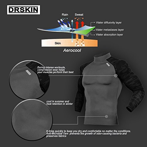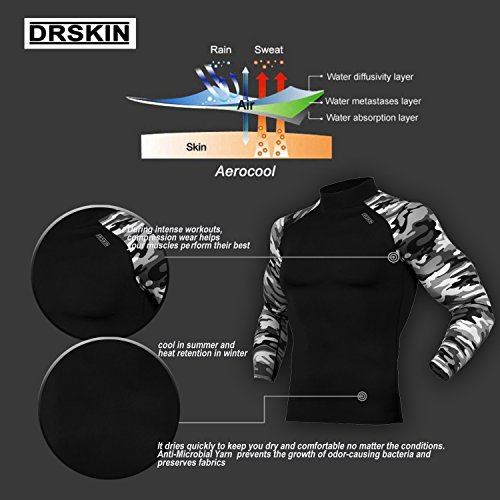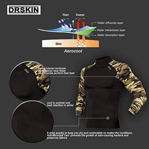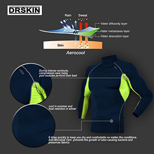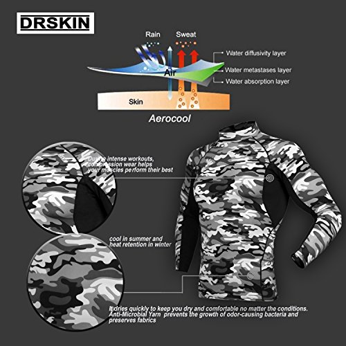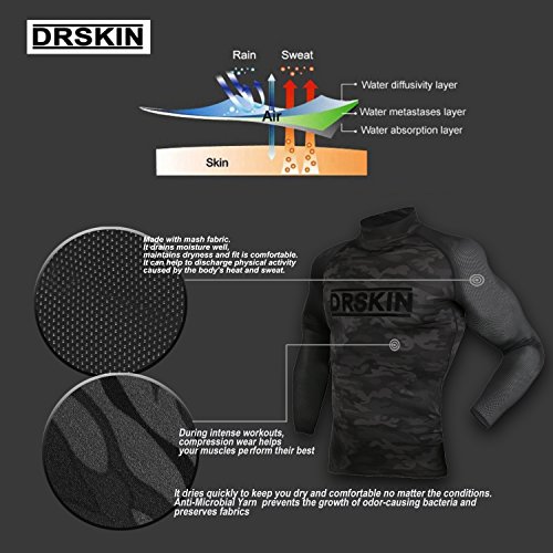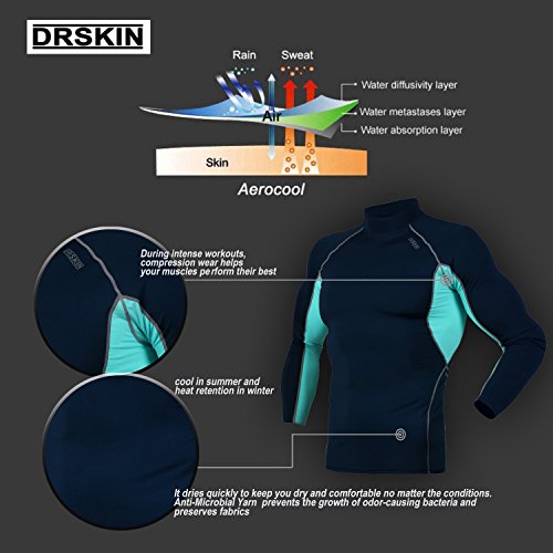 DRSKIN UV Sun Protection Long Sleeve Top Shirts Skins Tee Rash Guard Compression Base Layer UPF 50+ (SMBR31, XL)