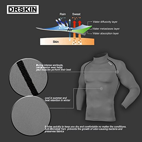 DRSKIN UV Sun Protection Long Sleeve Top Shirts Skins Tee Rash Guard Compression Base Layer UPF 50+ (RSMGY-B97, XL)