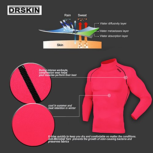 DRSKIN UV Sun Protection Long Sleeve Top Shirts Skins Tee Rash Guard Compression Base Layer UPF 50+ (SLPK36, XL)