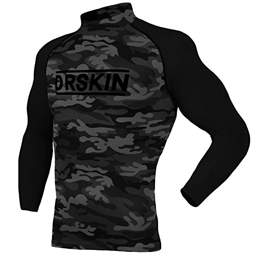 DRSKIN UV Sun Protection Long Sleeve Top Shirts Skins Tee Rash Guard Compression Base Layer UPF 50+ (RSB-MGY91, XL)