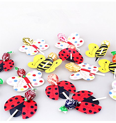 50pcs Candy Lollipop Decoration Gift Cute Insect Bees Ladybug Butterfly Card Birthday Party For Kids Wedding Decor (Ladybird)