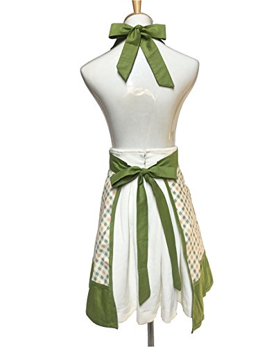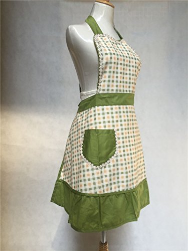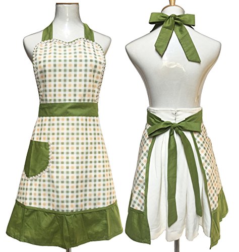 Lovely Sweetheart Retro Kitchen Aprons Woman Girl Cotton Cooking Salon Pinafore Vintage Apron Dress with Pocket,Green