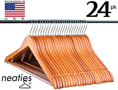 -. Title : Light Cherry Everyday Wood Hangers with Non-Slip Bar and Notches, Super Sturdy and Durable Wood, 24 pack