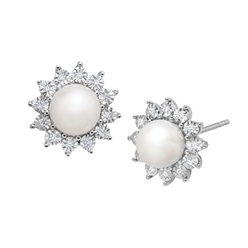 -. Feature : 7x7 mm Freshwater Cultured Pearls / 1/8 ct Round-Cut Diamonds / Color I-J, Clarity I2-I3 / Crafted in 14K White Gold / Measures 1/2 by 1/2 Inches