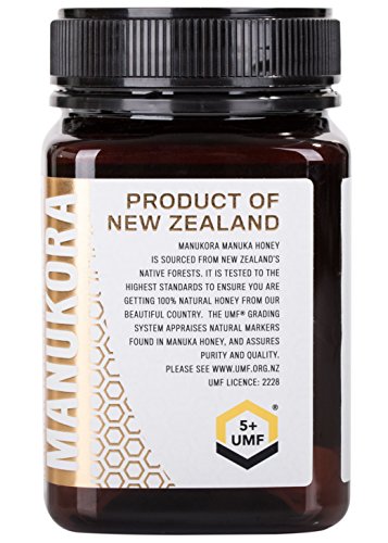 -. Binding : Grocery -. Brand : Manukora -. Feature : UMF 5+ certified Manuka Honey produced in most pristine environments of New Zealand's native forests. Lab-certified to be UMF 5+ standard / Batch tested in independent labs for UMF certification / Whipped and packed straight from the hive / Delicate creaming process makes Manukora honey smooth, luscious and delicious / For manuka honey to receive a UMF grading, independent lab test results must show the presence of DHA (dihydroxyacetone), Methylglyoxal, and Leptosperin. Manukora works with a trusted network of beekeepers around New Zealand -. Label : Manukora -. Manufacturer : Manukora -. PackageQuantity : 1 -. ProductGroup : Grocery -. ProductTypeName : GROCERY -. Publisher : Manukora -. Studio : Manukora -. Title : Manukora Manuka Honey UMF 5+