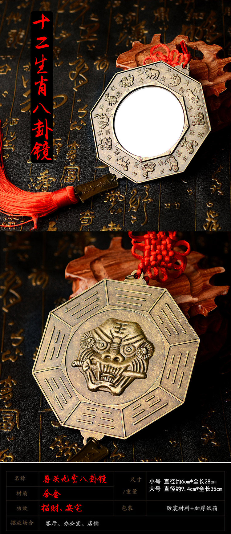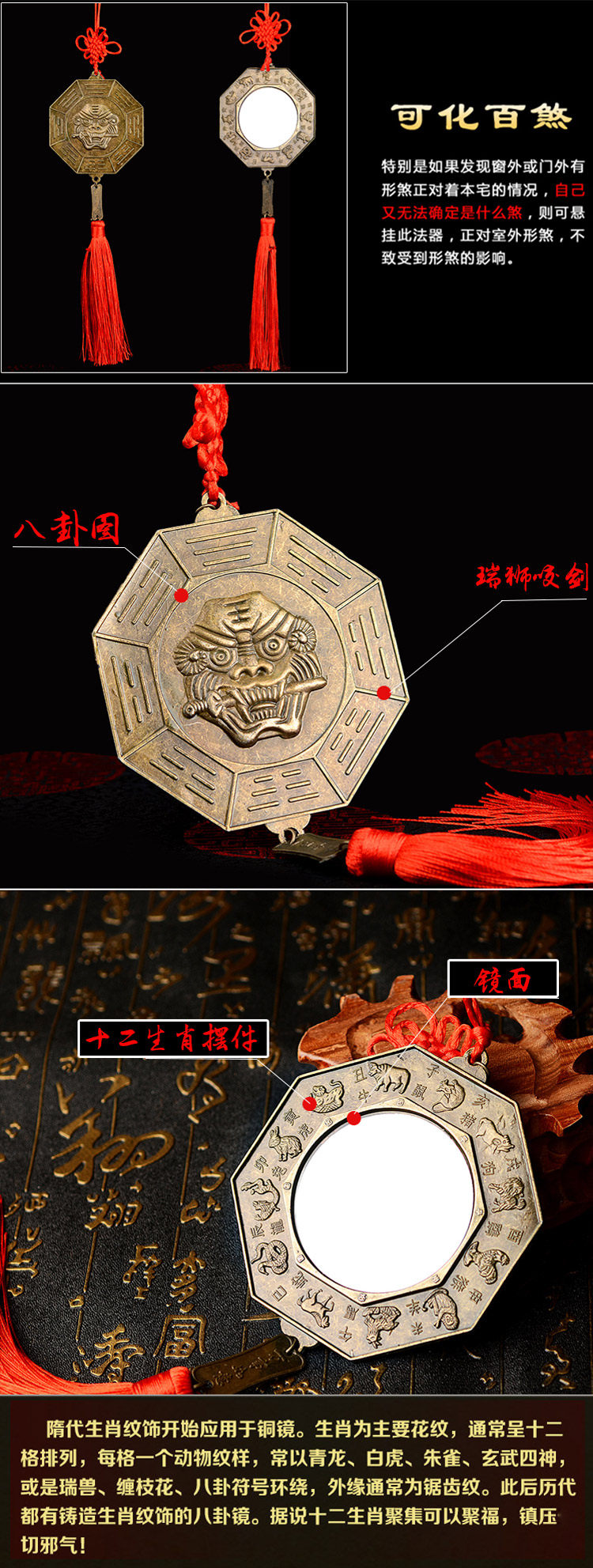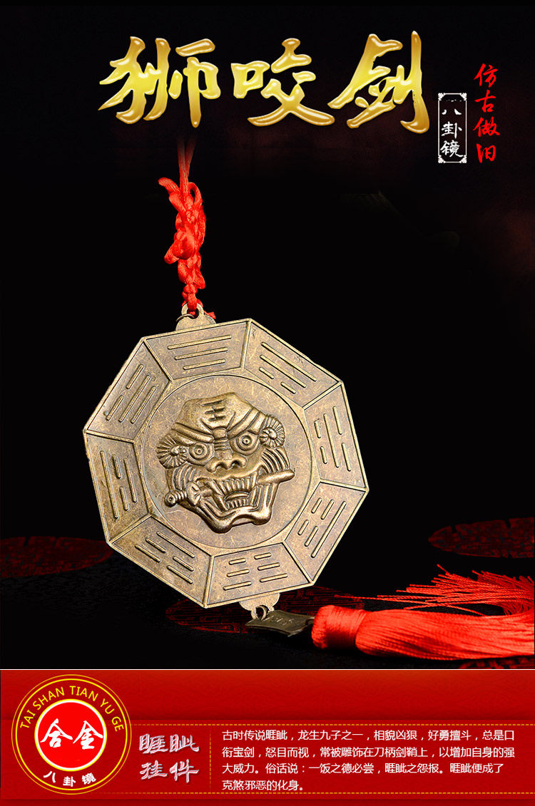 八卦镜挂件狮咬剑化解不利风水挂件门饰家居虎头牌摆件