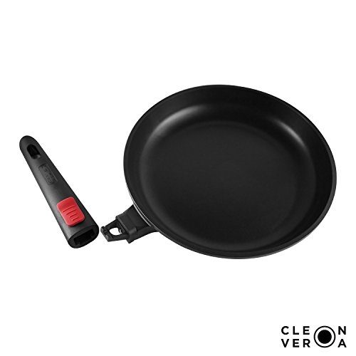 ✔ PRO QUALITY - Cleverona Essential 10.25" fry pan has a flared rim for drip-free pouring, a thick 4.5 mm warp-resistant bottom that evenly distributes heat from all heat sources (induction, radiant, ceramic, halogen & gas). Withstands heat up to 204°C/400°F (handle on)