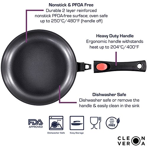 ✔ SAFE & SUPERIOR NON-STICK - Durable 2-layer reinforced nonstick PFOA-free surface resists scratches & allows you to cook with little to no oil or fat. Food slides off the pan. Oven safe up to 250°C/480° (handle off)