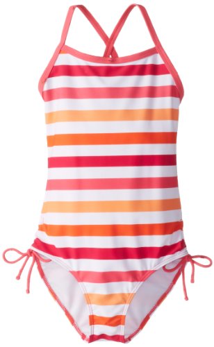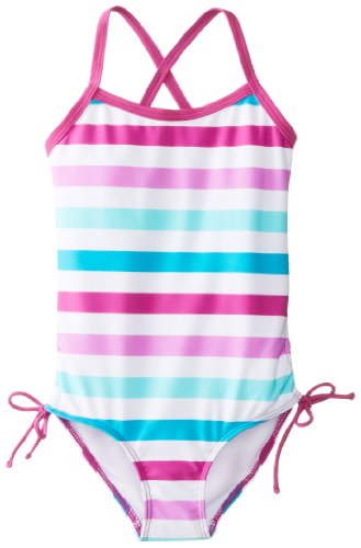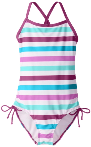 Kanu Surf presents our newest swim styles yet. Kanu, a surf and swim lifestyle brand, is well known for great prints and colors along with high quality functional apparel for the whole family. All of our swimwear is made with a high quality nylon/spandex tricot fabric and are lined both front and back. All of our prints are available in 1 or 2 piece options. Kanu swimwear is great for the active athlete as well as for the recreational swimmer. Our sassy 1-pc swimsuit sports a stylish stripe. Available in all girls sizes infant thru 16 so sisters can hit the beach scene as a team. Check out the coordinating boardshort and rashguard for a great set.Feature