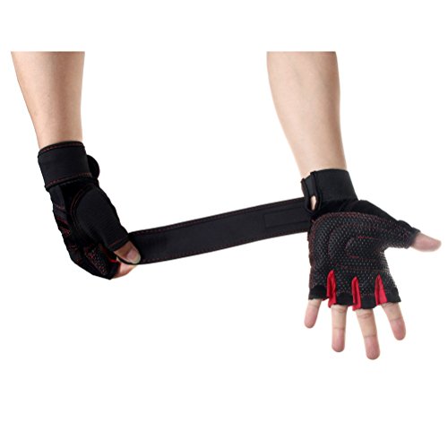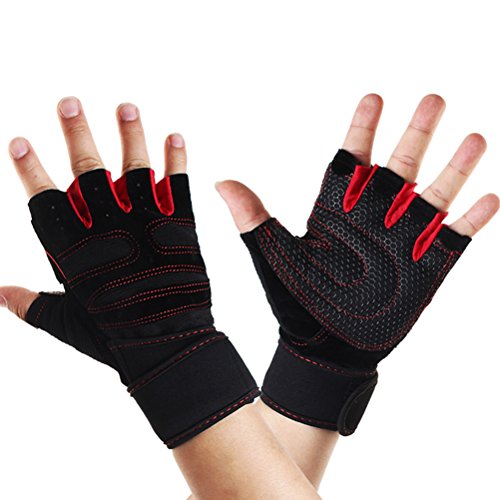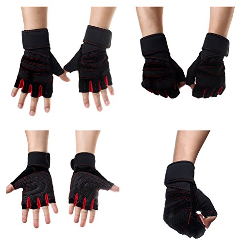 iLooper Weightlifting Gloves, Gym Wrist Wrap Support for Workout Crossfit Fitness Cross Training Weight Lifting Wrist Straps Exercise Gloves Red (M)