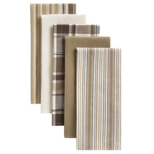 Oversized Kitchen Cotton Dish Drying Towels, Set of 5 Taupe, Brown, White 18 x 28 inches