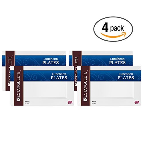 Rectangulete 12'' Rectangle White Luncheon - Dinner Plates, Disposable, Hard Plastic, Elegant Party Plates. 10 Party Luncheon - Dinner Plates Per Package Pack of 4