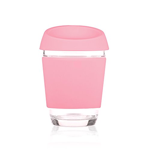 JOCO 12oz Glass Reusable Coffee Cup (Strawberry Pink)