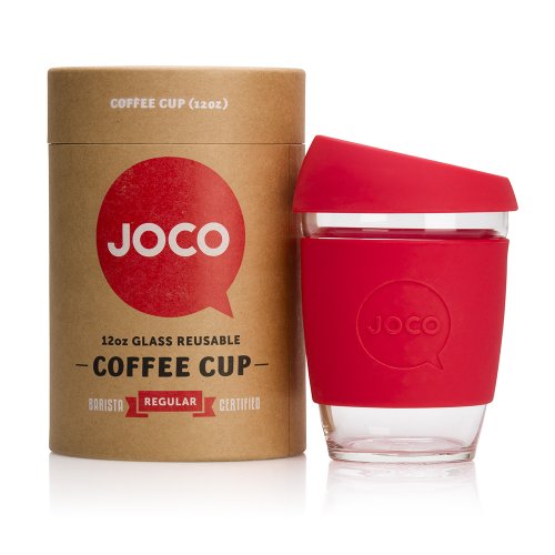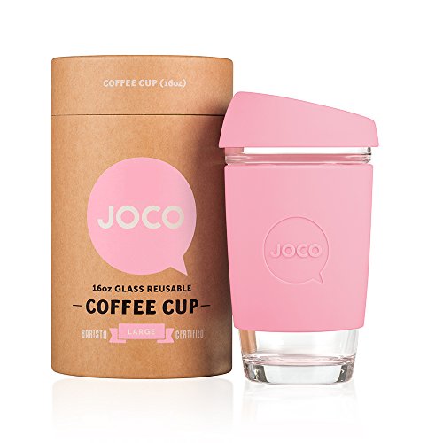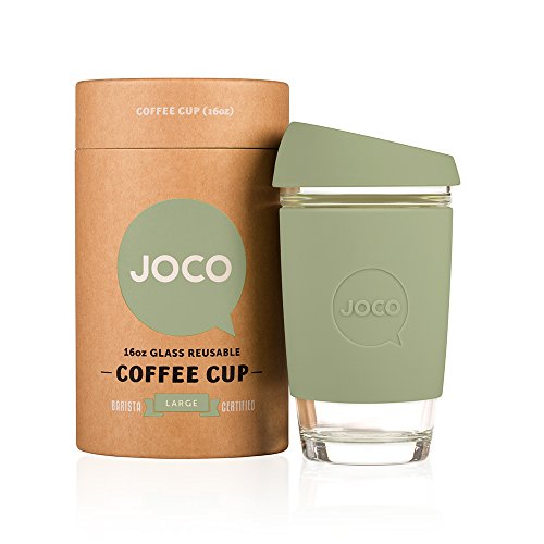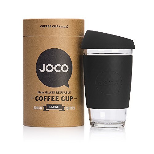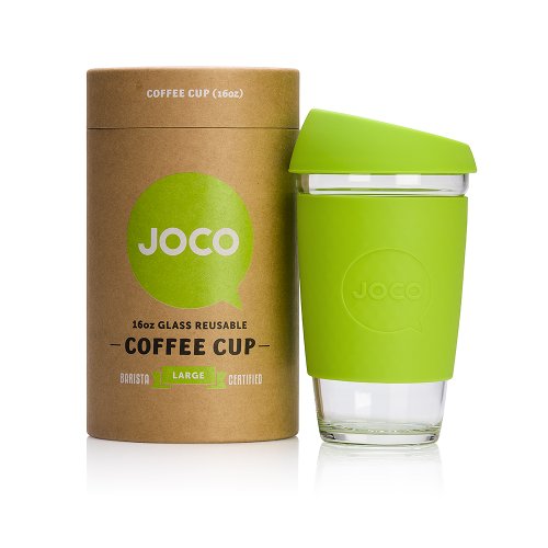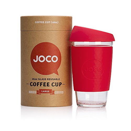 Hello. JOCO is a like-minded community of conscientious thinkers. We are devoted to making your daily coffee or tea better with smart and friendly products. JOCO cups are made from high quality borosilicate glass, making them lightweight and thermal shock resistant. JOCO cups do not crack or shatter when boiling water is filled in. Lesser forms of glass, including tempered and ordinary glass, have been known to unpredictably explode when subjected to extreme changes in temperature. Borosilicate glass removes the high risk of this happening to your reusable cup. Their superior durability also makes them microwave and dishwasher safe. Borosilicate is non-porous so it won't taint the flavor of your favorite beverage. JOCO cups have been tested and certified to be free of harmful chemical nasties including all types of lead, BPA, and cadmium and they are food grade safe. JOCO cups are compliant with FDA, REACH and LFGB regulations. Each JOCO cup is wrapped in a silicone sleeve to keep your coffee or tea at the optimal temperature, provide grip and keep your hands cool. JOCO cups are sealed with an ergonomic splash proof lid. The specially designed JOCO nose dome ensures no more embarrassing nose-to-lid collisions due to lack of clearance for that beak of yours. Packaged in a 100% recyclable and reusable paper canister, these barista friendly cups are modelled after disposable paper cups and available in three ideal sizes, 8oz, 12oz and 16oz, and an array of bright and vintage colors. JOCO aspire to craft the best products to enhance your daily ritual. The JOCO reusable glass cup reduces preventable waste and is a fine looking, forward thinking product, that keeps Mother Nature happy. We would like to applaud you for choosing to enjoy your coffee and tea responsibly in this first-class cup. Ditch paper go for glass.