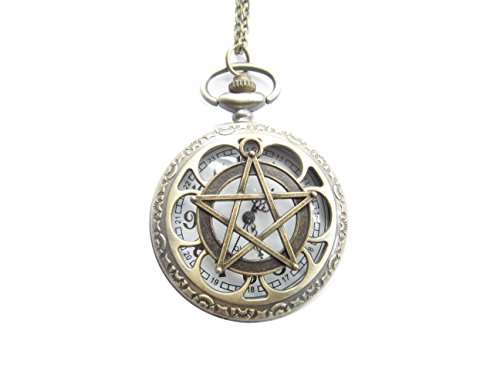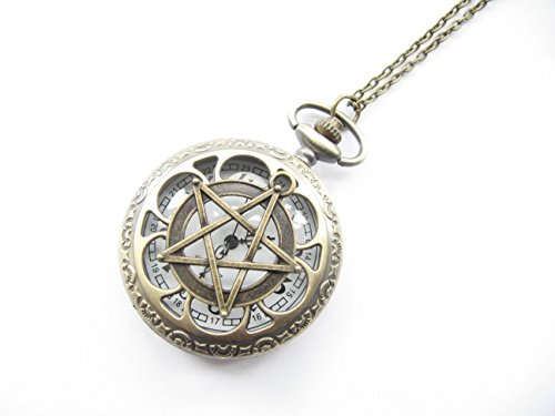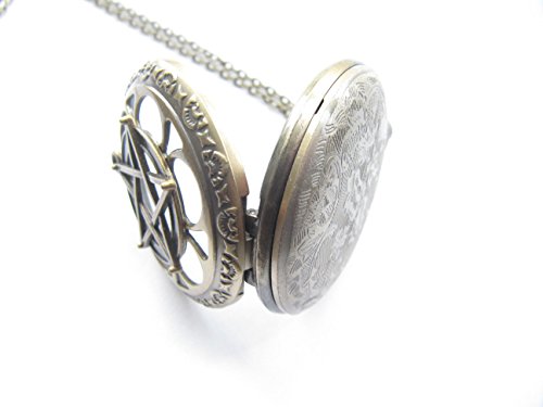 -. Title : Bronze Pentagram Pocket Watch Necklace Supernatural Pentacle Pendant Protection Amulet Wiccan Jewelry