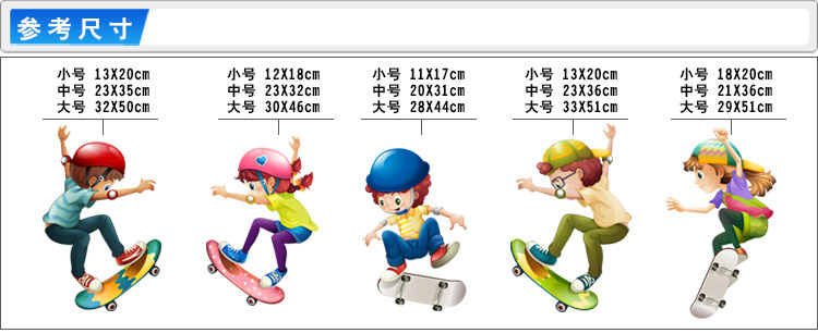 墙贴幼儿园卡通小人体育运动人物各种滑板动作培训教室贴纸贴画