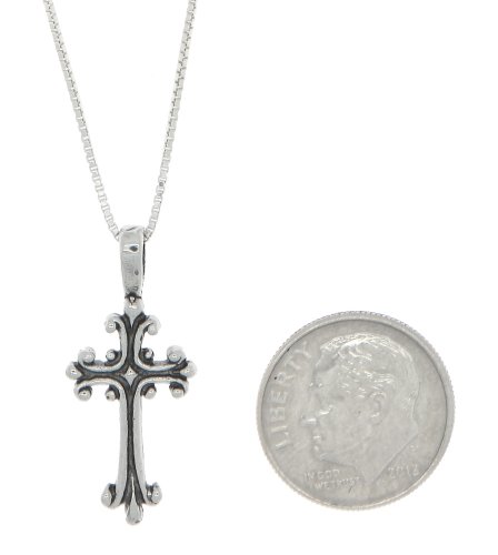 -. Feature : Oxidized Sterling Silver Pendant / Cross Measures Approximately 21 mm Height x 12 mm / Approximately 0.8 Millimeter Thin Box Chain Necklace Oring Clasp / sP.R.Ing ring clasp / Charm Made in USA; Chain Made in Italy