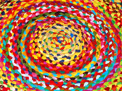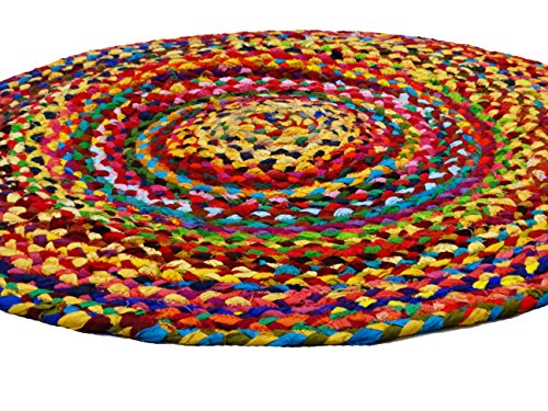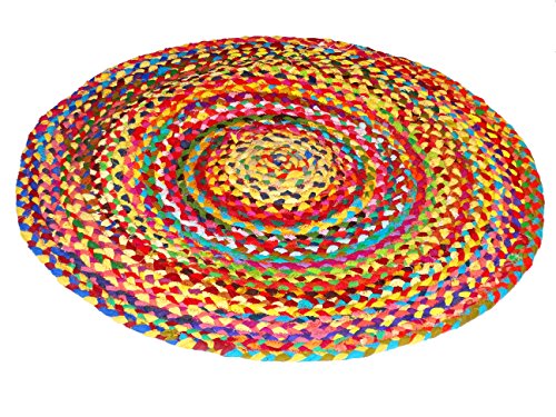 Virasat Hand Woven Reversible Cotton Multi Chindi Braid Rug - 28 inch Diameter-This Rug is made from multi color re-cycled yarns, actual product may vary in color from the image shown