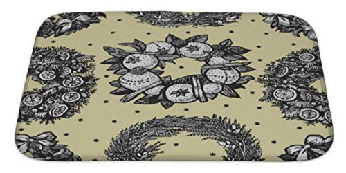 Gear New Graphic Pattern with Christmas Wreaths Bath Rug Mat No Slip Microfiber Memory Foam
