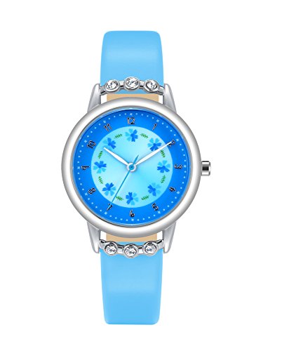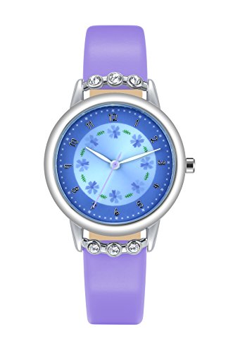 Analog Display with Clear digital Dial is easy to read, Simple type looks stylish and casual, lovely flower dial with diamonds, beautiful watches are very suitable for girls and children