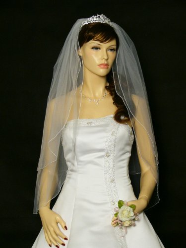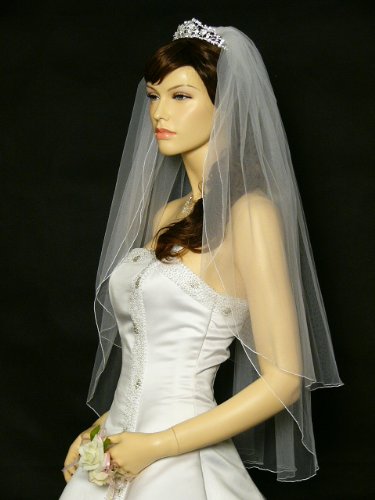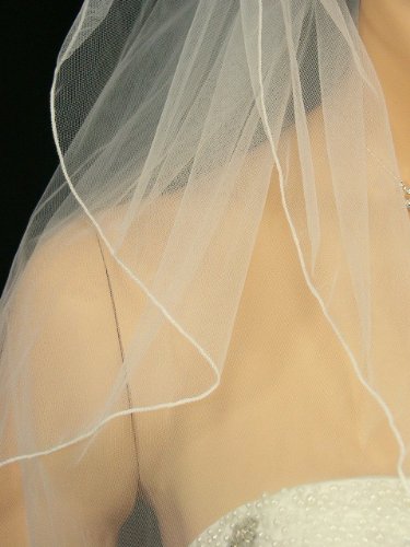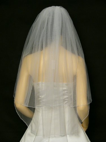 (SAMKY)/Accessories/Scarves/DIRECT FROM USA/2T 2 Tier Hemmed Pencil Edge Bridal Wedding Veil Fingertip Length 36"