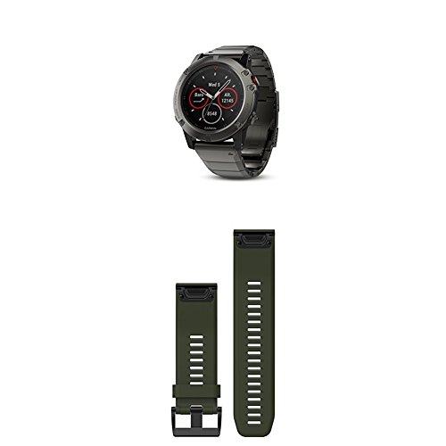 -. Title : Garmin Fenix 5X Sapphire - Slate Gray with Metal Band and 010-12517-03 Fenix 5X Quick fit 26 Watch Band - Moss Green Silicone