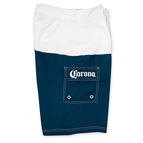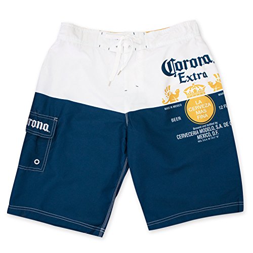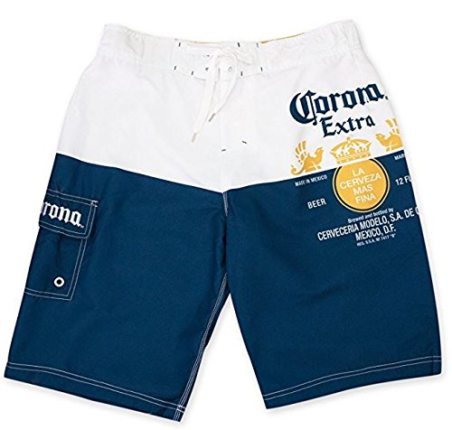 Product DescriptionOfficially licensed Corona Extra label design swim shorts, with side pocket and embroidered logo. Elastic back with tie in the front.0