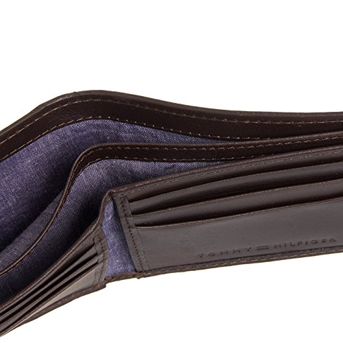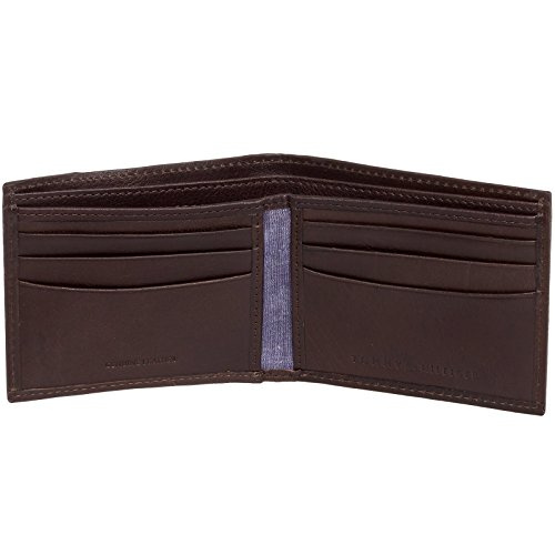 Carry your cash in style with this Leather Strip Bifold Wallet from Tommy Hilfiger. Constructed of soft, genuine leather, this bifold opens to reveal a spacious interior sure to keep you properly organized. 6 card slots, 2 slip pockets, and a dual, fully lined bill compartment give you plenty of options when storing your everyday necessities. The exterior features a contrast leather strip embossed with the Hilfiger name, so everyone knows who you carry. Presented in a gift box. Measures 4.25" x 3.5" x .50" (when closed).Feature