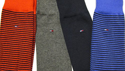 Tommy Hilfiger 4-pack Mens' Fine Bar Trouser Socks (10-13 (one size), Scarlet/Charcoal/Navy/Royal)