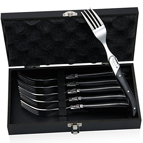 Set includes : 6 pieces Fork set, Material: 3cr14 Stainless Steel + Black Wood
