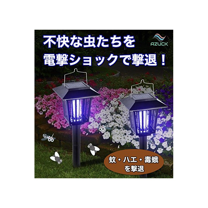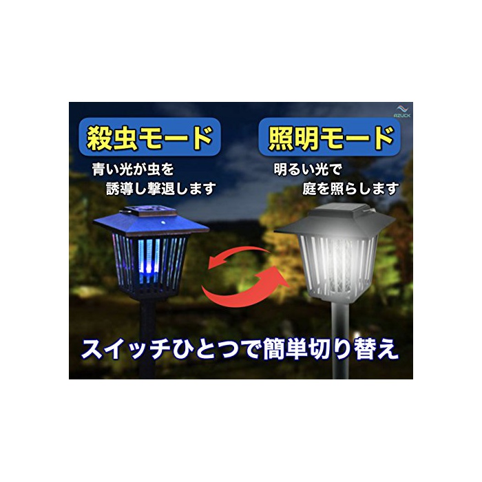 AZUCK home 【AZUCK】 2way 전격 살충기 LED솔라 라이트 방수 가든 라이트 (충퇴치 유아등 UV광원 흡인식 살충기 자동 점등) 일본어 설명서 & 1년 보증이 붙어 있음