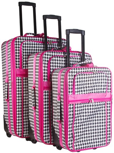 No matter how you are traveling this is the perfect luggage set for those on the go. The set contains three expandable pieces that can add up to 25% more packing room. The smallest bag can be used as a carry on bag. The bags are constructed of heavy duty 600 Denier polyester fabric. The in-line skate wheels offer a smooth glide. The vibrant print of this set will allow you to easily find your bags in the busiest of airports.