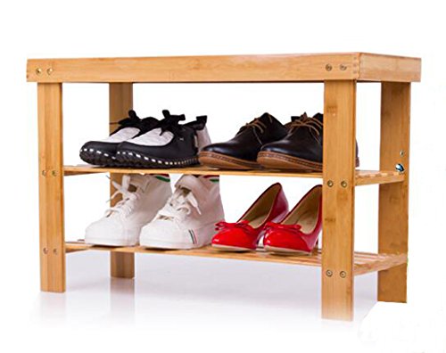 -. Title : Lifeasy - 100% Natural Bamboo Removable Shoe Bench 2-Tier Shoe Storage Racks Shelf Organizer Chair Seat