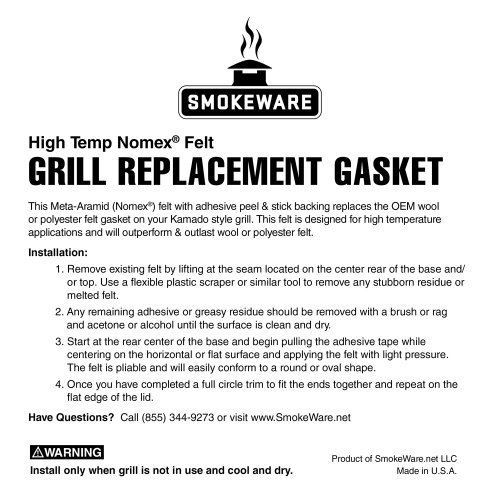 High-Temp Nomex Replacement Grill Gasket for Large Big Green Egg (R)