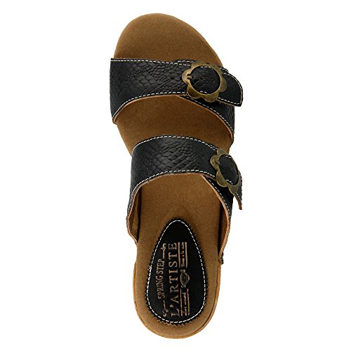 Studio : Spring Step Publisher : Spring Step Binding : Apparel Product Description Step in the world of comfort and style with the women's LArtiste by Spring Step Mittie sandal. Constructed with high-quality leather upper, this sandal is hand painted for an alluring look. With its adjustable buckle closure, it lends easy entry and a snug fit. The densely padded memory foam footbed provides optimal comfort, while the polyurethane midsole absorbs shocks and impacts to prevent foot fatigue. Get the women's LArtiste by Spring Step Mittie sandal for its elegant look and utility. 0