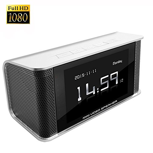 -. Title : CAMXSW HD 1080P Hidden Spy Camera Alarm Clock FM Radio Speaker / Motion Activated / Night Vision / Security Covert DVR Nanny Cam Motion activated TOP Secret with Invisible IR lights(White)