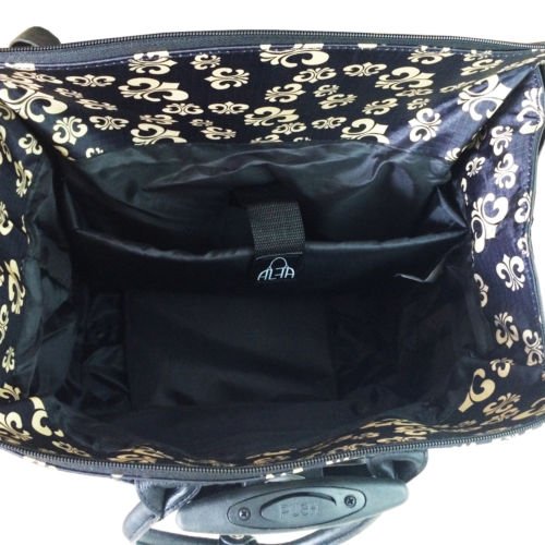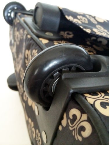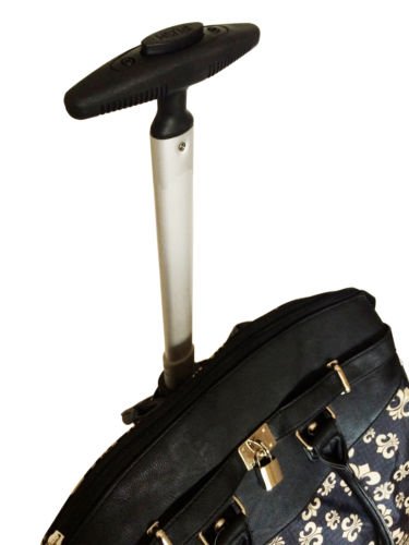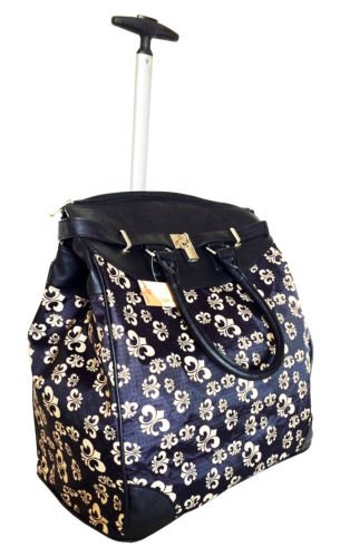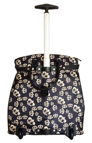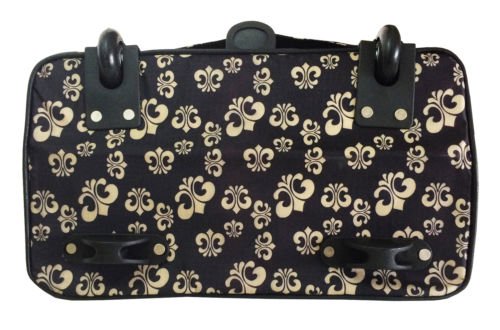 -. Binding : Electronics -. Brand : Trendy Flyer -. Color : Fleur Black and Beige -. Department : laptop-computer-briefcases -. EAN : 0765857886329 -. Feature : Color: Black and Beige / Padded laptop area can fit laptop 12" wide, 12" tall and 2" thick using securing velcro strap/Padded laptop area can fit laptop 12" wide, 17" tall and 2" thick without using securing velcro strap / Pattern: Fleur De Lis / Material: Polyester Canvas / Size: 19" H x 17" L x 9" W / Weight: 4.4 lbs / Additional Info: Height From Top of Handle to Floor with Handle Fully Extended: 35" -. Label : Private -. Manufacturer : Private -. PackageQuantity : 1 -. ProductGroup : PC Accessory -. ProductTypeName : CARRYING_CASE_OR_BAG -. Publisher : Private -. Studio : Private -. Title : Trendy Flyer Computer/Laptop Rolling Bag 2 Wheel Case Fluer Black -. UPC : 765857886329