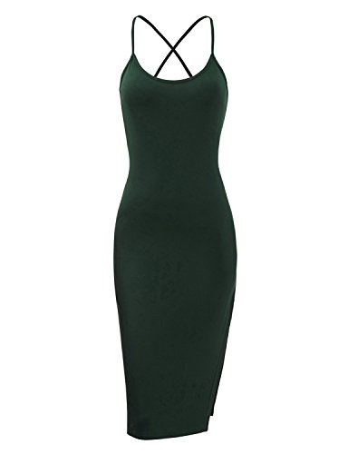 Regna X Women Green Deep v-neck Sleeveless Scoop Neck Summer Beach Midi Dress