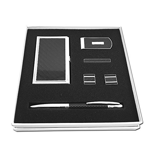 -. Feature : • A COMPLETE SET FOR ANY PROFESSIONAL: If just started working in an office this set will provide you with all you need to make the best impressions. Including a pen, money clip, bar tie, cufflinks and business card holder of exquisite design make sure that you have all the essentials you need to have a bright start to your new office! / • ELEGANT DESIGN & UTMOST QUALITY: These handy accessories have carbon fiber details and chrome finish, that makes them look just stunning. Thanks to their high quality make sure that all the pieces of this set will retain their shine and amazing appearance for years. / • SAVE YOURSELF MONEY & TIME: This unique set by SHOPTOTUM will provide with all you need. You have your office supplies, all your suit accessories and more must-have products combined in a beautiful set, in an unbeatable P.R.Ice. Buying each piece separately would require you to place multiple orders and definitely spend more money! / • THE PERFECT PRESENT IDEA FOR HIM: If you are in the pursuit of a great present for your beloved ones, you are looking in the right place. This beautiful set would definitely impress any man! Offer this gift box and make sure that you will be remembered for your choice! / • GET IT WITH CONFIDENCE: SHOPTOTUM's top P.R.Iority is your satisfaction. Backed up with a full money-back-satisfaction guarantee, you have nothing to worry about. Just try it and make sure you will love it!