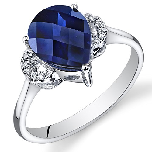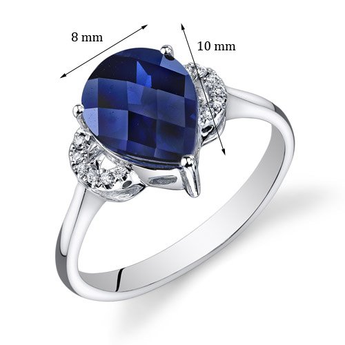 -. Title : Peora 14K White Gold Pear Created Blue Sapphire Diamond Ring (2.8 cttw)