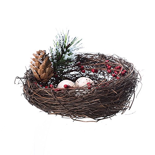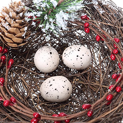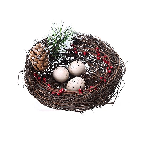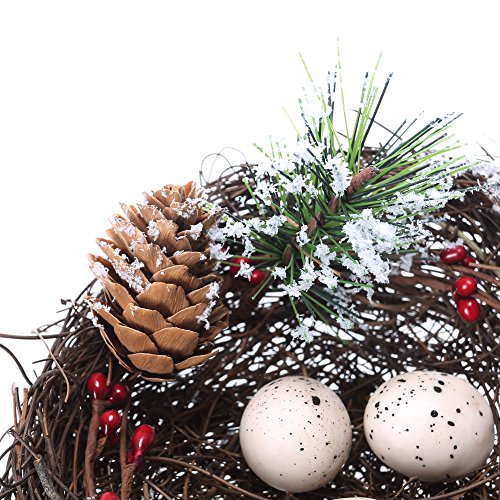 Felice Arts 6" Artificial Bird Nest Ornament with Faux Natural Berries Cedar and 3 Eggs Set for Easter, Home, Party Decoration